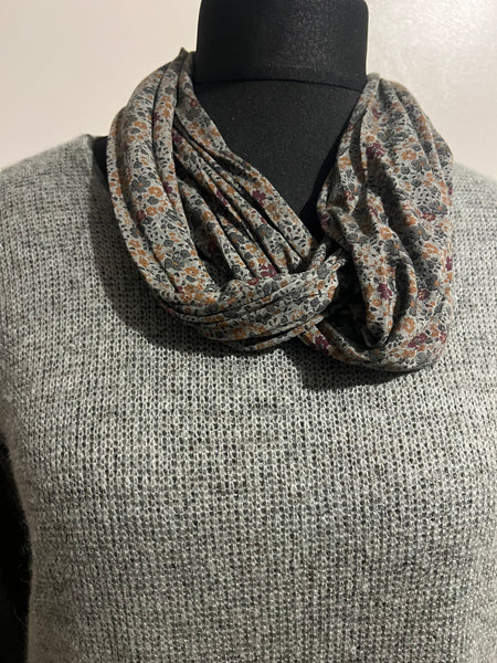 Love this double layer knit, which has a floral attached lining that shows on sleeves and hemline, it also has a separate co-ordinating scarf. The knit has a light texture to it and is a great layering piece this Autumn. Simply add your favourite trousers or jeans for a chic look!