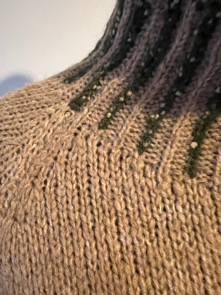 Stunning contrast trim super soft knits. The contrast trim on the mocha knit is khaki, and edged around the neck, hemline and cuffs. You can also turn the high neck down into a turtle style neck (if you get too hot!)