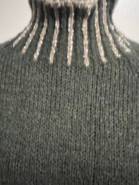 Stunning contrast trim super soft knits. The contrast trim on the khaki knit is mocha, and edged around the neck, hemline and cuffs. You can also turn the high neck down into a turtle style neck (if you get too hot!)