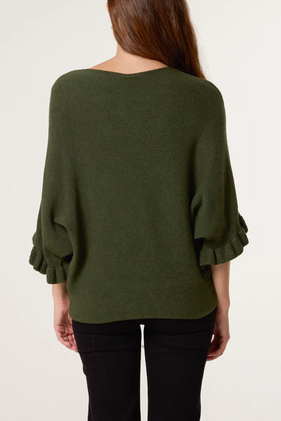 RUFFLE SLEEVE KNIT KHAKI